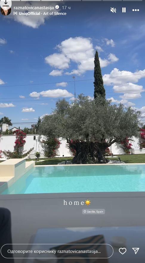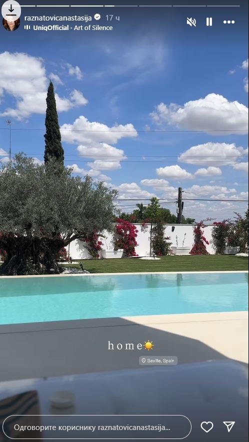 Anastasija Ražnatović i njen suprug Nemanja Gudelj nedavno su se preselili u novi luksuzan dom u Sevilji, koji su, kako su preneli mediji, platili šest miliona evra. Ćerka Svetlane Cece Ražnatović sada je na svom Instagram profilu podelila kadrove iz dvorišta vile. Pored velikog bazena, par uživa i u savršeno uređenoj bašti. Tu su ukrasne biljke i palme, a vrt je tako uređeno da i botanička bašta može da im pozavidi.