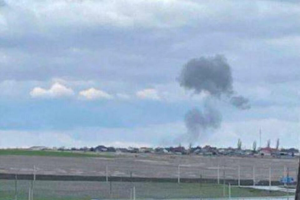 Na snimku se vidi stub dima koji se diže iz naselja Hvardiske u okrugu Simferopolj, gde se nalazi vazdušna baza.