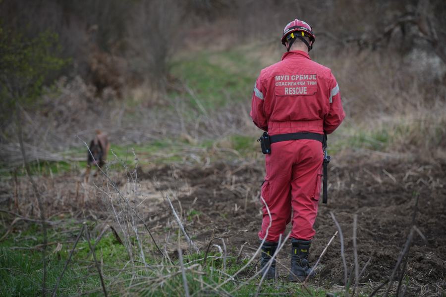 Na snimku se takođe vidi i specijalizovani policijski pas tragač koji takođe, zajedno sa timovima MUP-a, detaljno pretražuje teren.