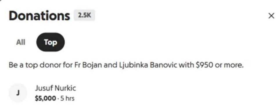 Veliki gest donatora potpisanog sa “Jusuf Nurkić” može se vidjeti na sajtu “GoFund Me”, na kojem je odmah pokrenuta akcija skupljanja pomoći za djecu koja su u nesreći ostala bez roditelja. Kraj imena košarkaša Jute Džez stoji da je uplatio 5.000 dolara, a s obzirom na to da poznati sportista nije potvrdio, ni demantovao da je učinio ovaj gest, pretpostavka je da neće željeti da daje dodatnu medijsku pažnju ovom gestu
