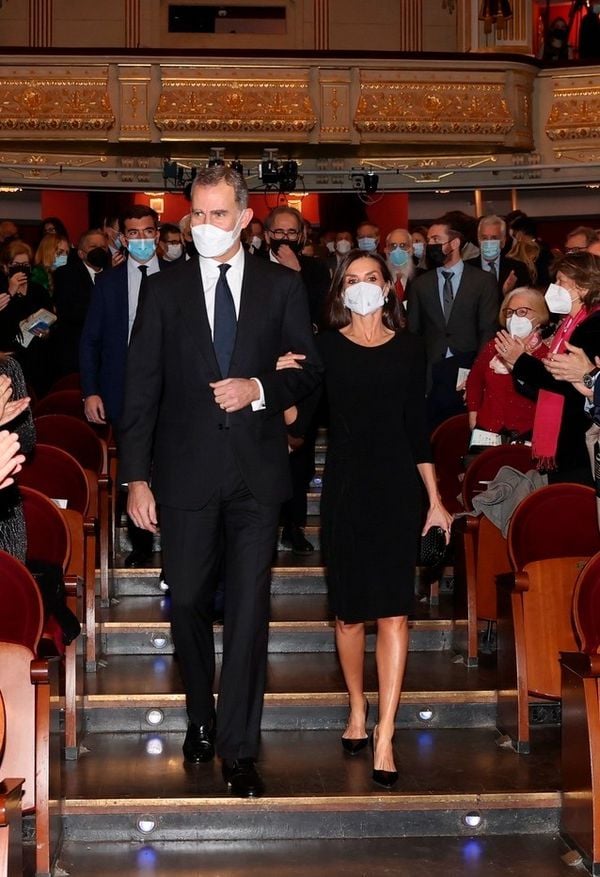 Letizia je u pratnji supruga došla u Kraljevsko pozorište u Madridu na obilježavanje 500. godišnjice smrti Antonija de Nebrije, slavnog španjolskog humanista, filologa i leksikografa. Kraljica je za ovu priliku obukla nenametljivu crnu haljinu brenda Emporio Armani koju je kombinirala s klasičnim salonkama i torbicom u istoj boji.