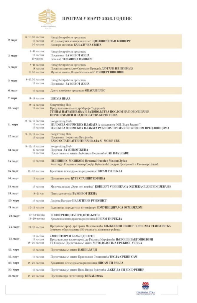 Mart u Kući Milanovića donosi raznovrstan i izuzetno zanimljiv program.