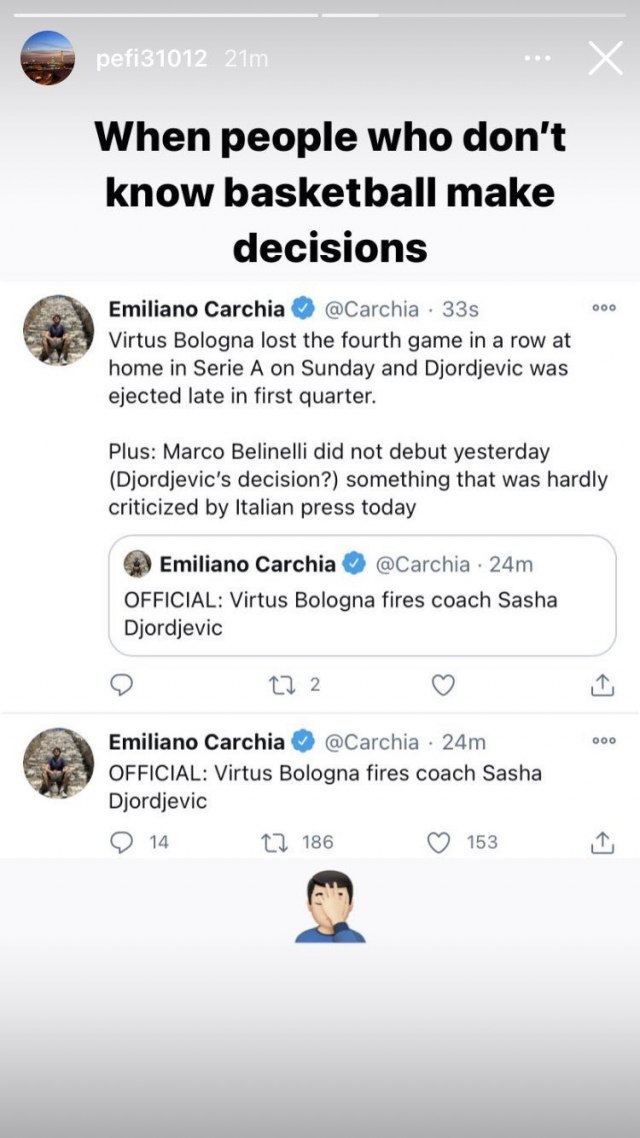 Iskusni plej italijanskog tima, koga je u Bolonju doveo baš Đorđević, oglasio se na Instagramu povodom te odluke.