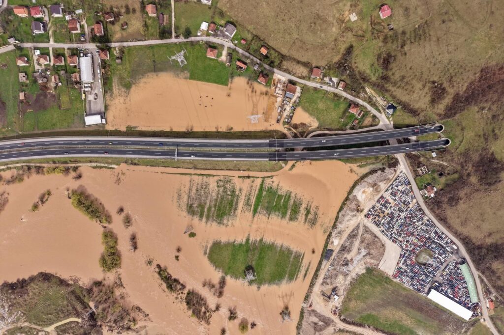 Agencija Pixsell objavila je fotografije iz zraka koje najbolje prikazuju trenutno stanje na ulazu u Sarajevo, gdje se rijeka Bosna izlila iz korita., prenosi Avaz.