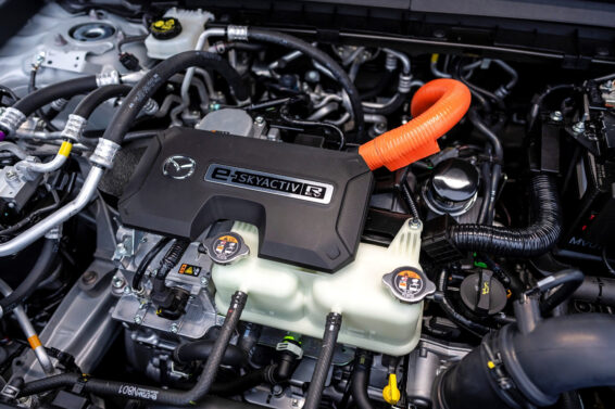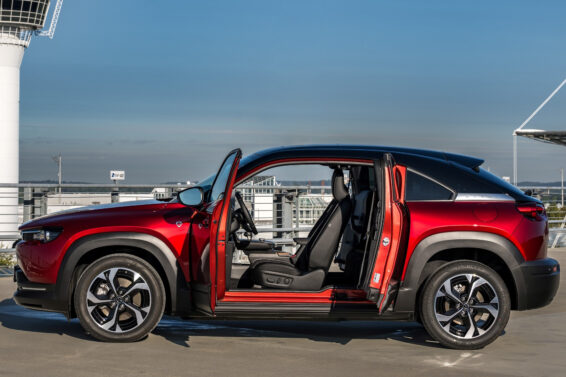 Mazda MX-30 debitovala je 2019. godine kao električni automobil sa vrlo skromnim dometom sa punom baterijom (oko 200 km). Godine 2020. MX-30 je dobila blagi hibrid sa dvolitarskim benzinskim motorom za japansko tržište, a 2023. predstavljena je i tehnički najsloženija verzija — e-Skyactiv R-EV sa plug-in hibridnim pogonom sekvencijalnog tipa zasnovanim na Wankelovom motoru sa jednim rotacionim cilindrom.