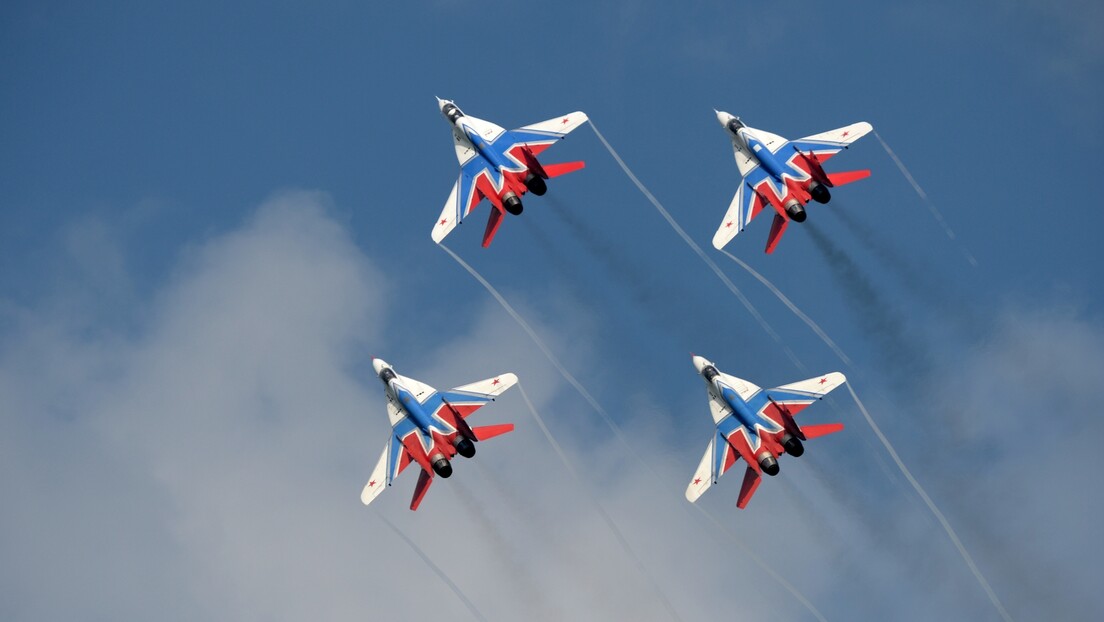 Glavne zvezde dana bili su, naravno, piloti: avijatičarski tim “Prvi let” je na avionima Jak-52 i Jak-54 izvodio najkompleksnije trikove u vazduhu, praveći piruete i “crtajući” po nebu srca i emotikone, a nakon toga je atmosferu do usijanja dovela i ekipa “Ruskih vitezova”, koji su na lovačkim avionima Su-35S krstarili nebeskim svodom.