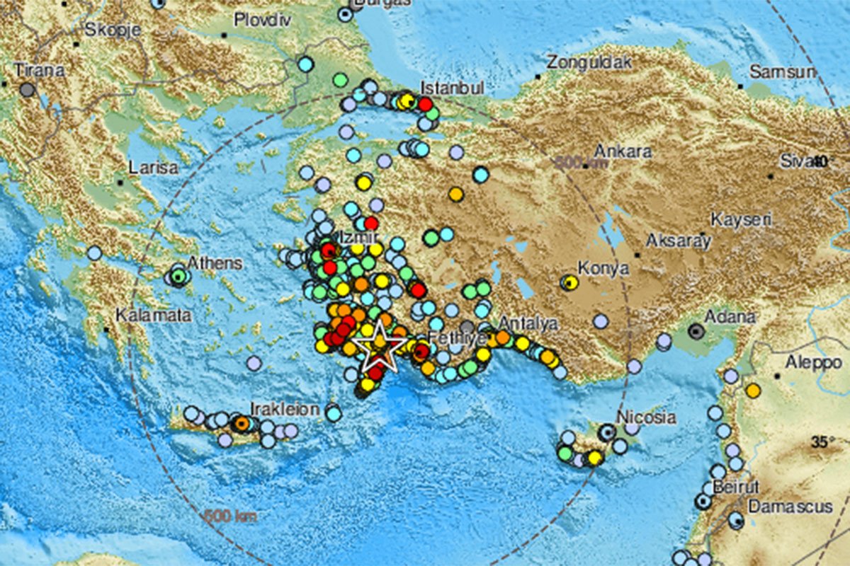U saopštenju se navodi da je epicentar zemljotresa bio u Sredozemnom moru na dubini od 67,91 kilometar i da se dogodio u 02:17 sati, kao i da se osjetio u susjednim regionima, uključujući grčko ostrvo Rodos, javila je turska televizija NTV.